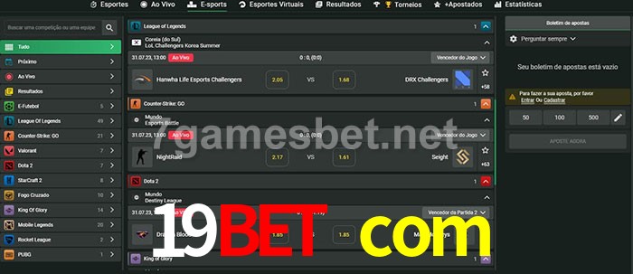 A aposta 19bet com oferece aos jogadores a experiência mais conveniente de apostas em eSports!